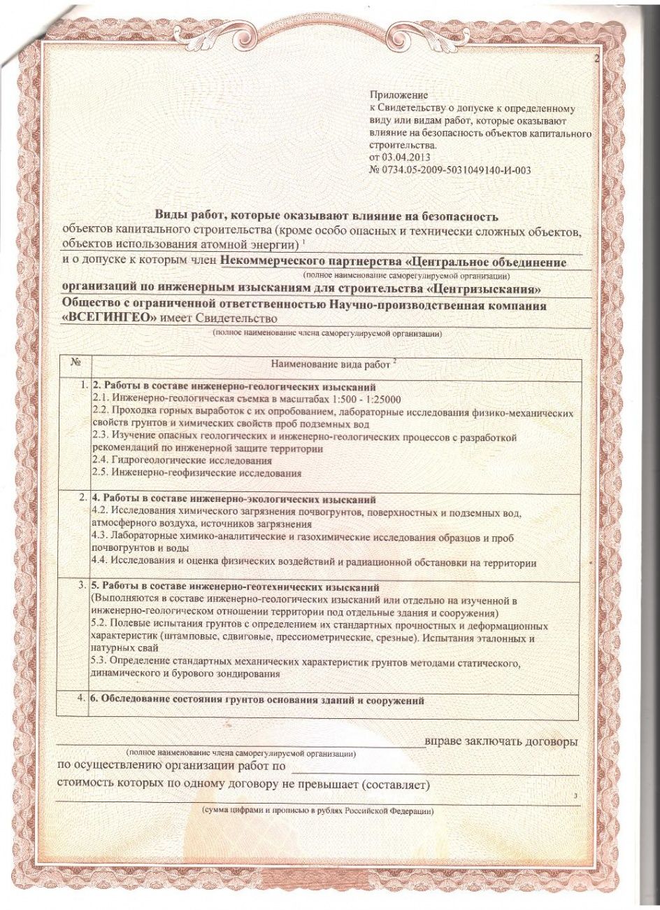 Свидетельство о допуске к работам в области инженерных изысканий (страница 2)