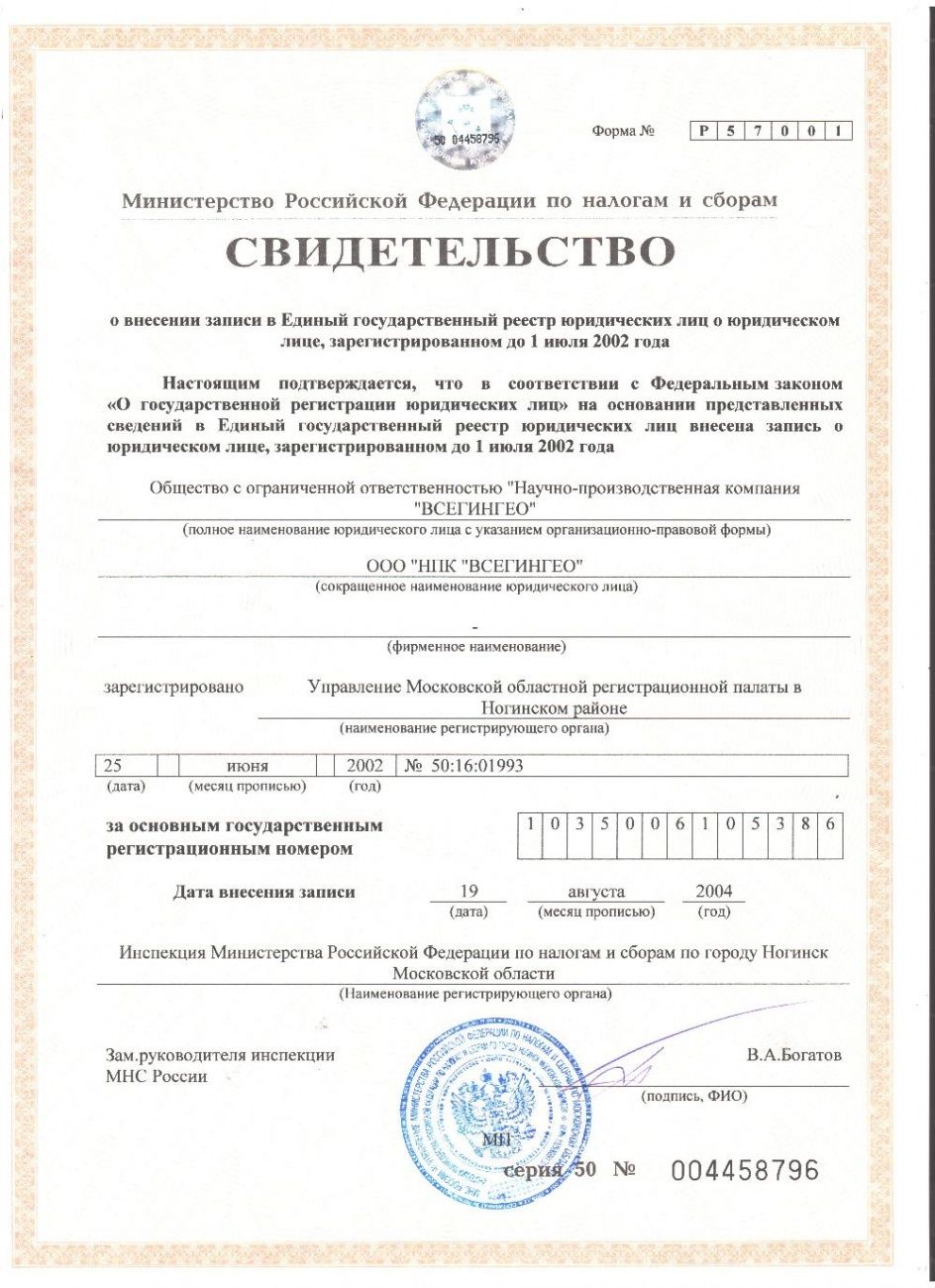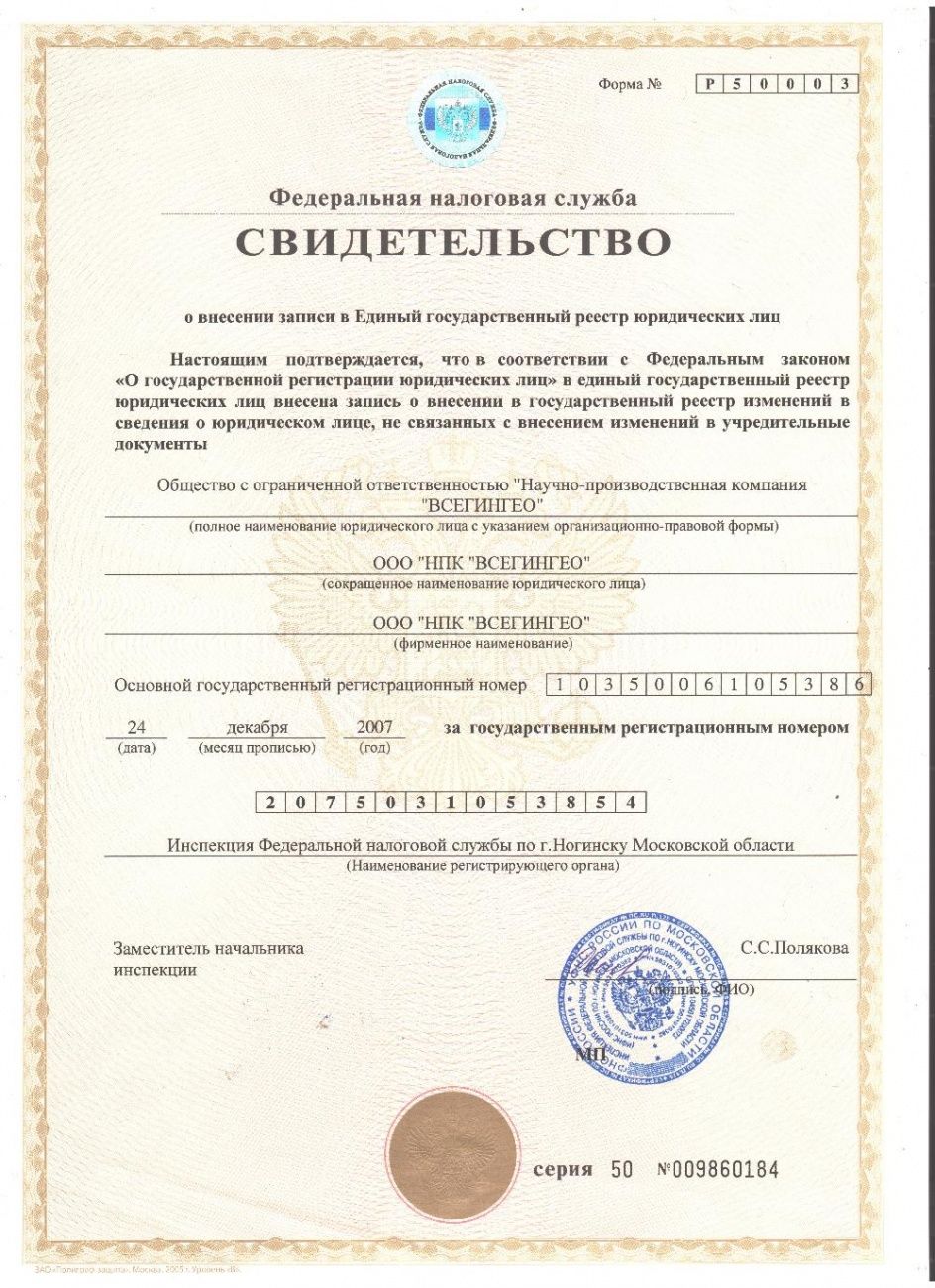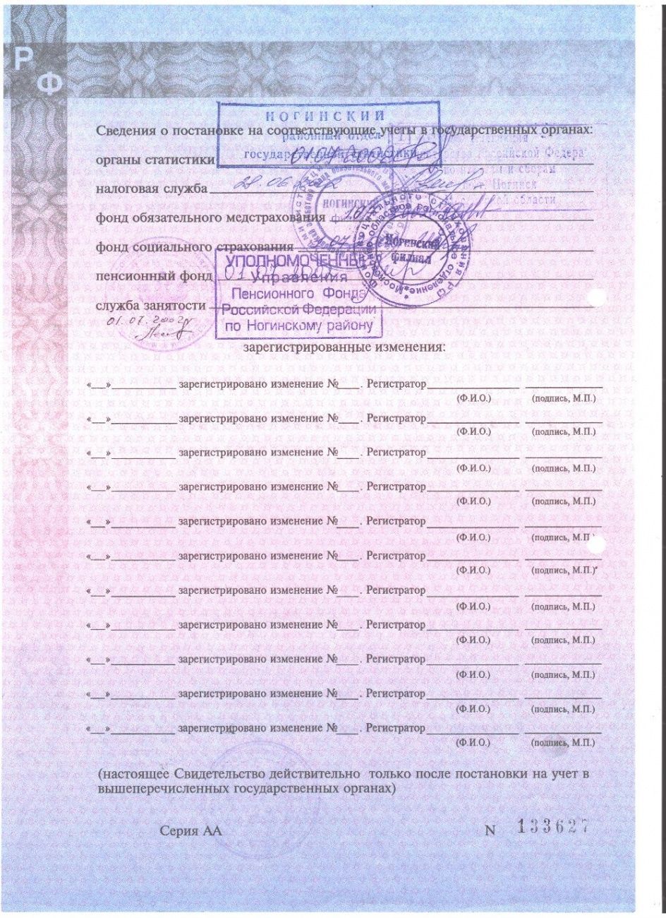 Свидетельство о государственной регистрации юридического лица (страница 2)